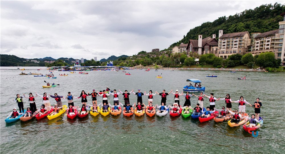 當(dāng)夕陽(yáng)熔金,將千島湖染成一片溫暖的橙紅,精疲力盡的我們索性躺在皮劃艇上,隨波輕蕩。回望這片“戰(zhàn)場(chǎng)”:摩托艇拖曳著“水上飛魚(yú)”凌空翻騰,驚叫與歡呼劃破天際;遠(yuǎn)處,仍有伙伴在浮板上努力穩(wěn)住身形,笑聲陣陣。定格發(fā)梢滴落的水珠,這一刻終于懂得:并肩作戰(zhàn)時(shí)濺起的每一朵水花,都是這個(gè)夏天最爽快的勛章;濕透衣衫的汗與湖水交融,才是團(tuán)隊(duì)勝利最珍貴的印記!